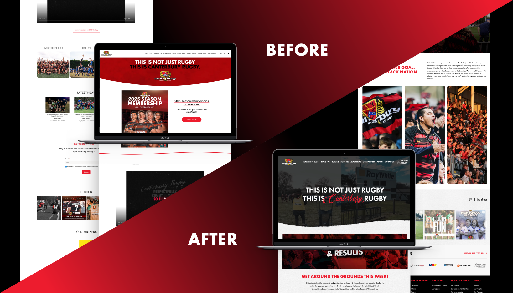 Partnering with local icons, Canterbury Rugby, is a dream come true for us red and black supporters! As a cornerstone of our local sporting identity, Canterbury Rugby needed a digital presence that matched their strength, history, and future ambition. This was more than a website, it was a digital upgrade that brings the Canterbury Rugby brand to life online.